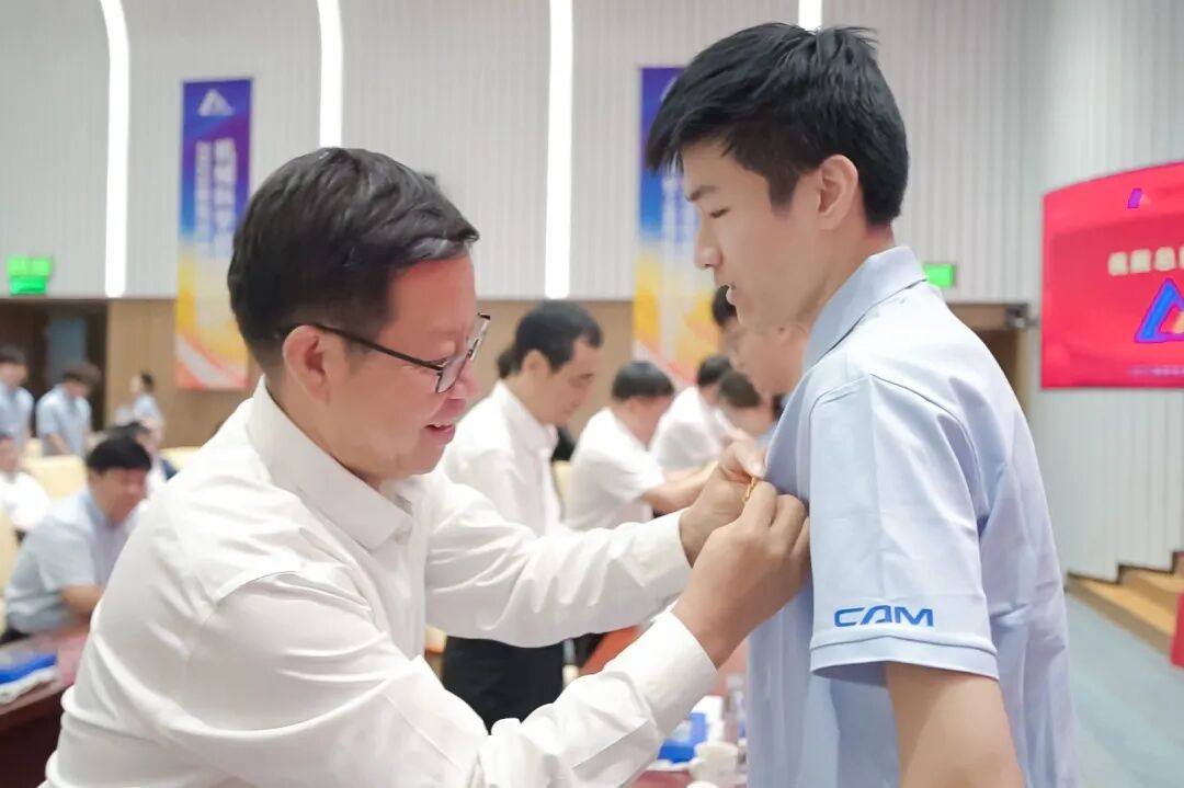 典禮上,王德成、李玉鑫及導師代表共同為新生佩戴總院徽章。這枚徽章不僅象征著中國機械總院人的身份,更承載著“以提升中國裝備制造水平為己任”的使命與榮光。優(yōu)秀導師獎、最受歡迎教師獎、新生入學獎學金和優(yōu)秀課程獎獲獎代表上臺領(lǐng)獎。新生代表手捧鮮花向?qū)焸儷I上誠摯敬意與節(jié)日祝福,表達莘莘學子的感激之情。